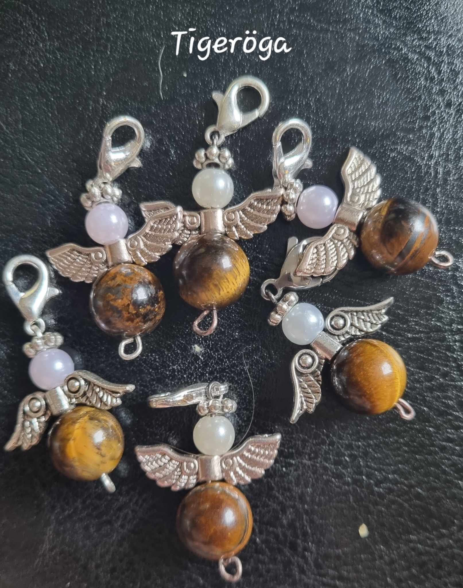 Handgjorda änglaberlocker med en äkta Tigeröga kristall